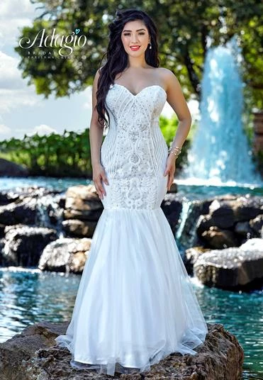 Adagio Bridal D1569 strapless sweetheart neckline beaded sequin and tulle long destination bridal gown wedding dress