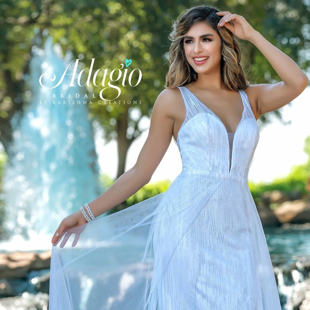 Adagio Bridal D1412 V neckline sheer straps and open back with embellished belt glitter tulle destination bridal gown wedding dress with sheer overskirt