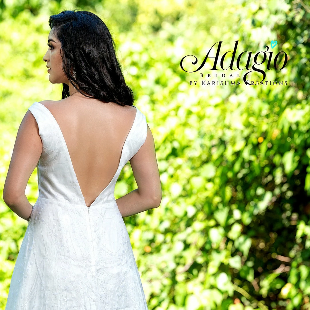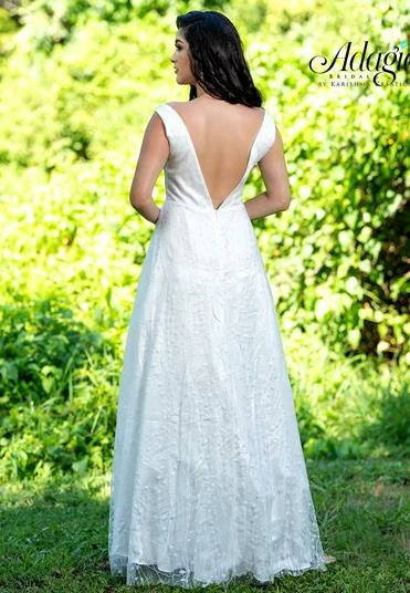 Adagio Bridal D1481 plunging neckline with sheer panel and open back sequined glitter tulle A line destination bridal gown wedding dress