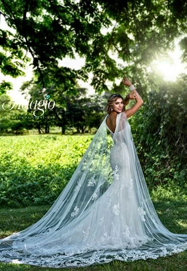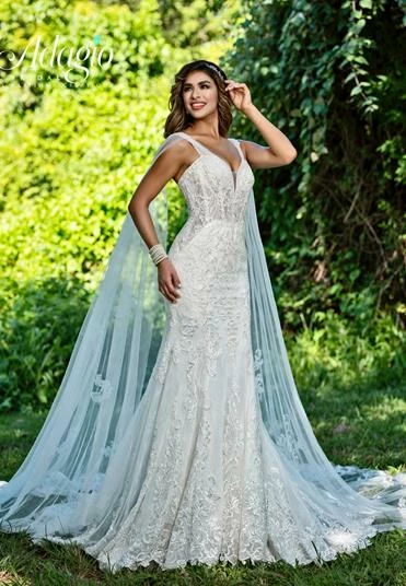 Adagio Bridal W9379 V neckline tulle straps, off the straps, fit and flare long wedding dress bridal gown