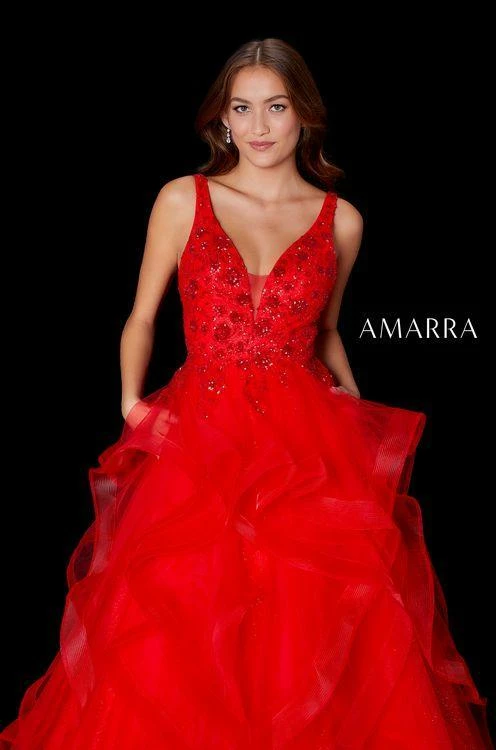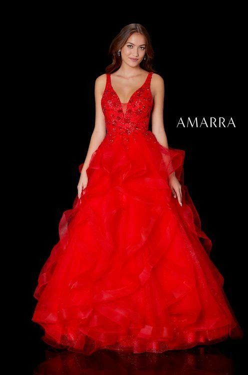 Amarra 87334 Long Layer Ruffle A Line Ball Gown Prom Dress Sequin PageantÂ