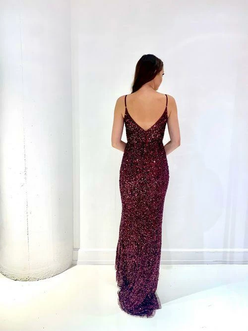 Amarra 87416 Long Fitted Sequin Prom Dress Evening Gown Slit FormalΒ Beaded gown featuring a V-neck bodice and zipper V-back with adjustable straps.