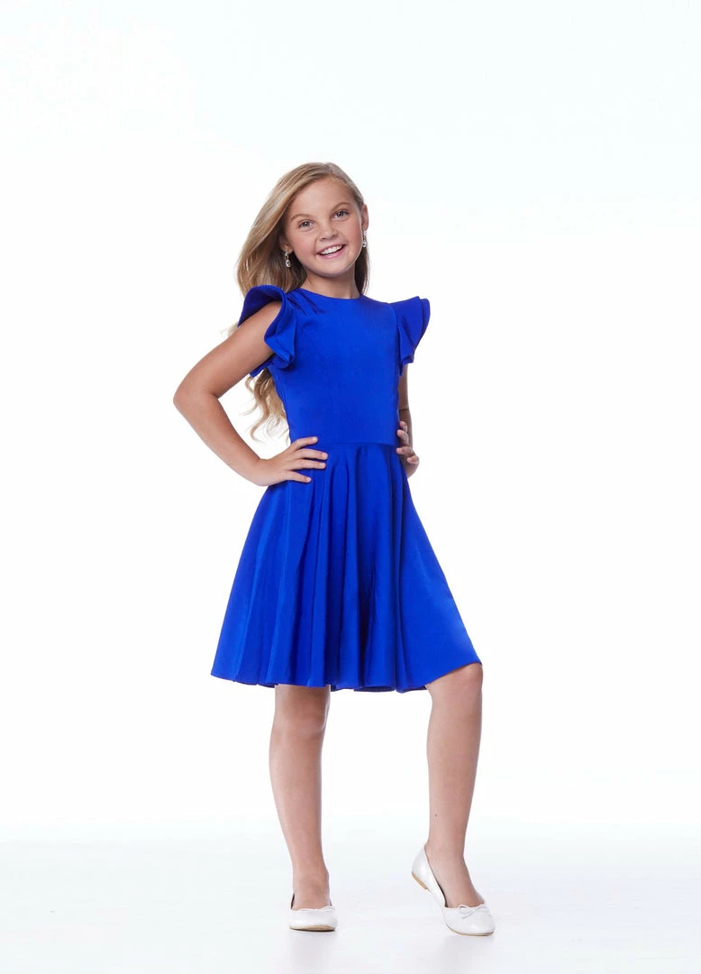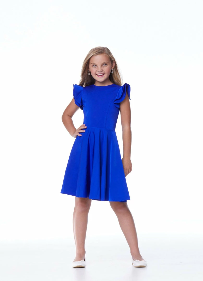 Ashley Lauren 8042Â Girls and Preteen’s tea length crepe pageant dress ruffle sleeves party gown with high neckline and short A line skirt