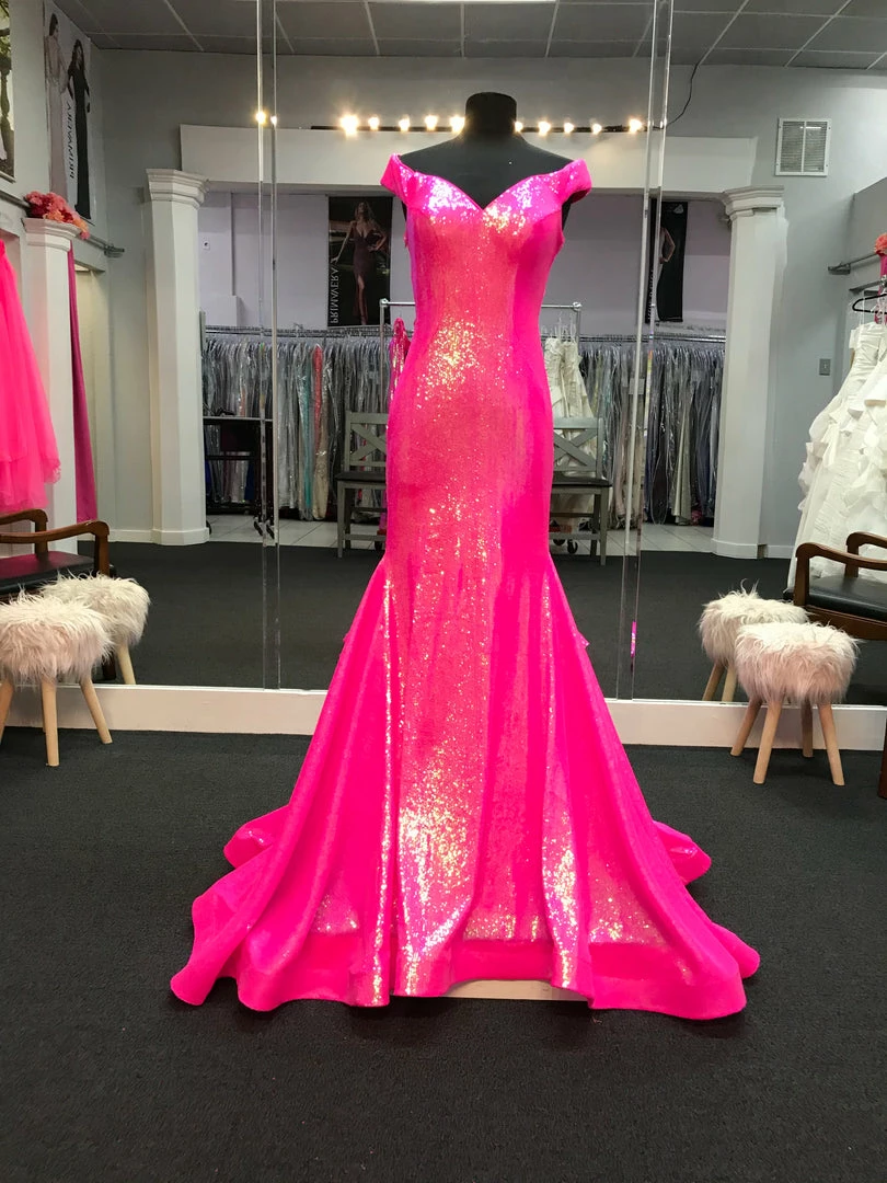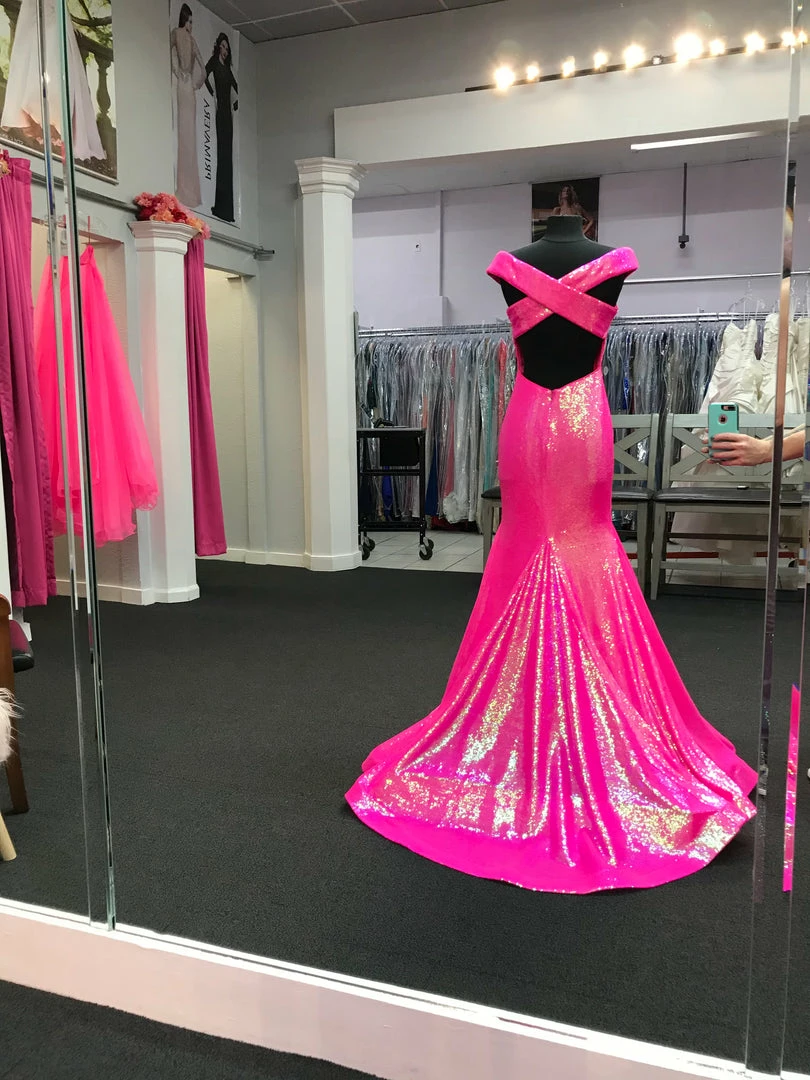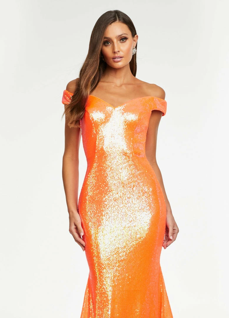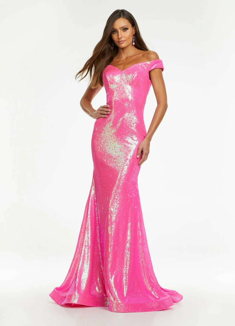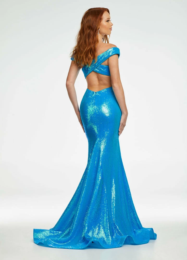 Ashley Lauren 11107 Sequin Pageant Dress Prom Gown Backless off the shoulder formal dress.
