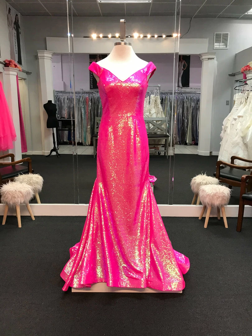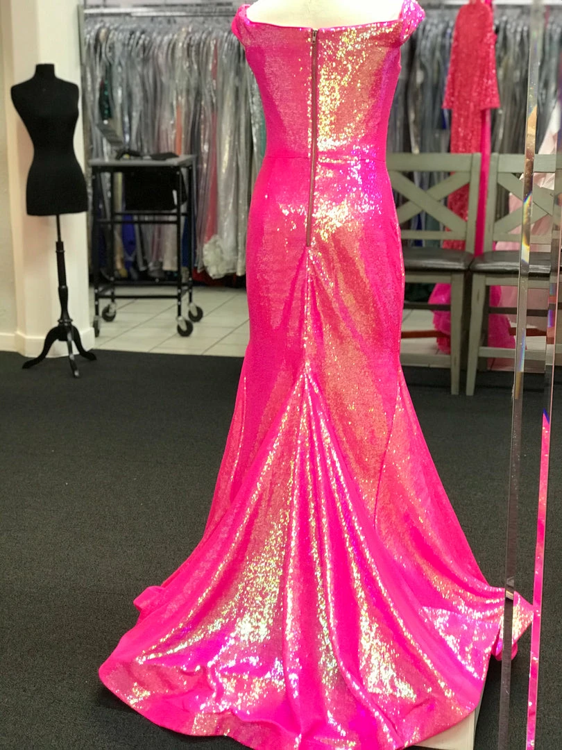 Ashley Lauren 11109 is a long fitted sequin formal prom & Pageant dress. Featuring off the shoulder straps and a lush trumpet skirt with a sweeping train.