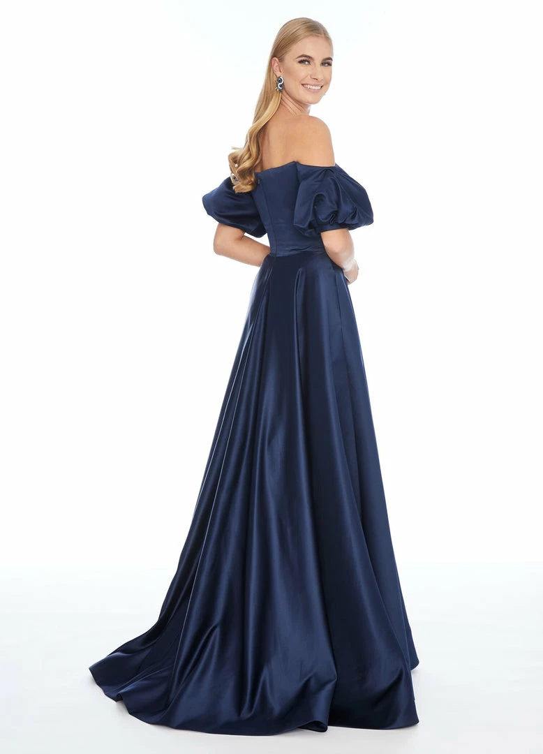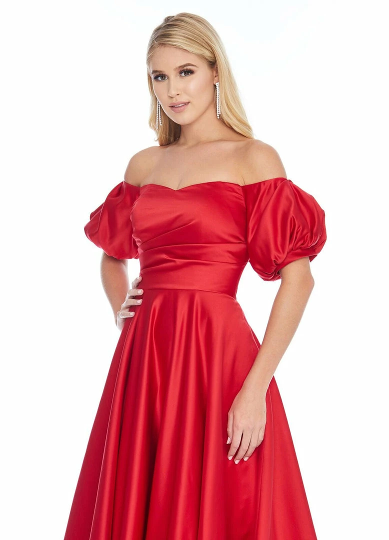 Ashley Lauren 1790 off the shoulder satin A line ball gown with puff sleeveÂ