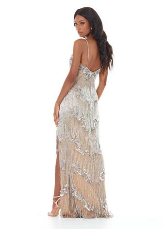 Ashley Lauren 1817X V neckline fitted fringe pageant gown evening dress prom dress fully lined.