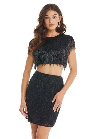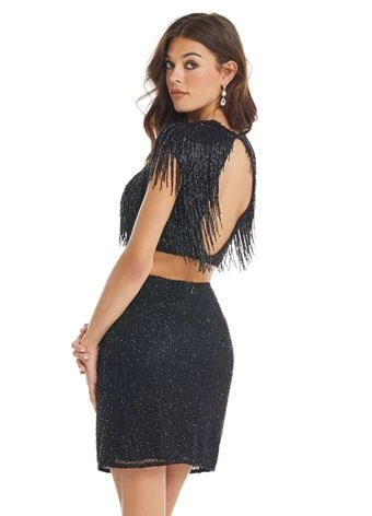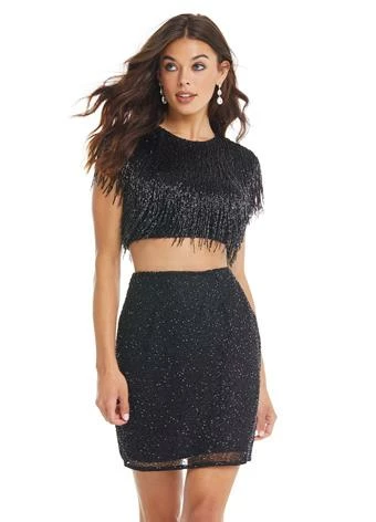 Ashley Lauren 4397 two piece fringe short cocktail dress homecoming dress fun fashion dress pageant wear.
