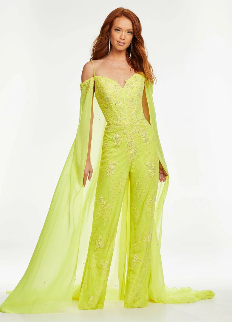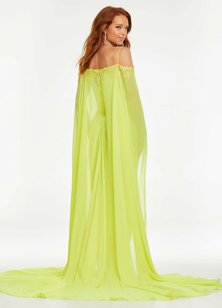 Ashley Lauren 11150 Lace Jumpsuit with Chiffon Cape trimmed in Lace