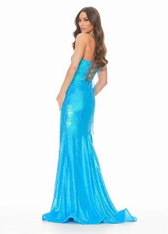 Ashley Lauren 11024 This is a neon sequin prom dress featuring a scoop neckline giving way to fitted skirt with train. The long mermaid pageant gown is complete with an open corset lace up back. Prom, Pageant and Formal Evening Wear Dresses.