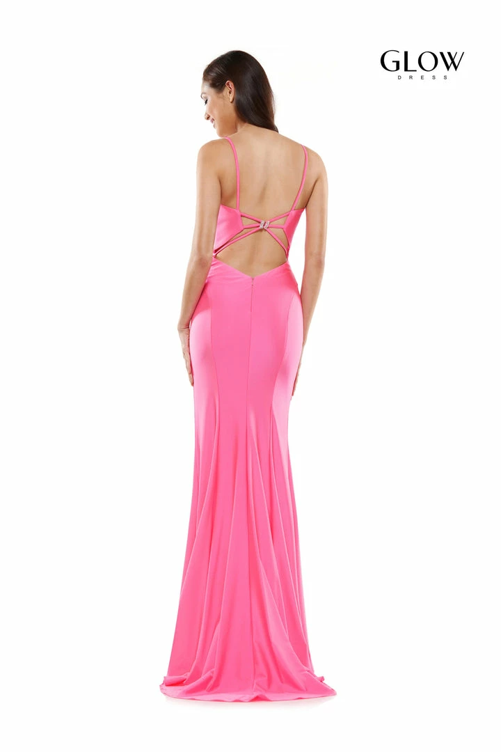 Colors G990 Long Fitted stretch V Neck formal prom dress Slit backless 46″ lycra fit and flare dress, front slit, plunged