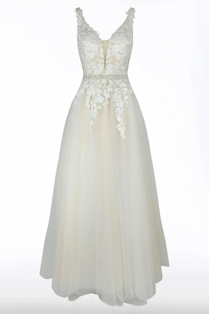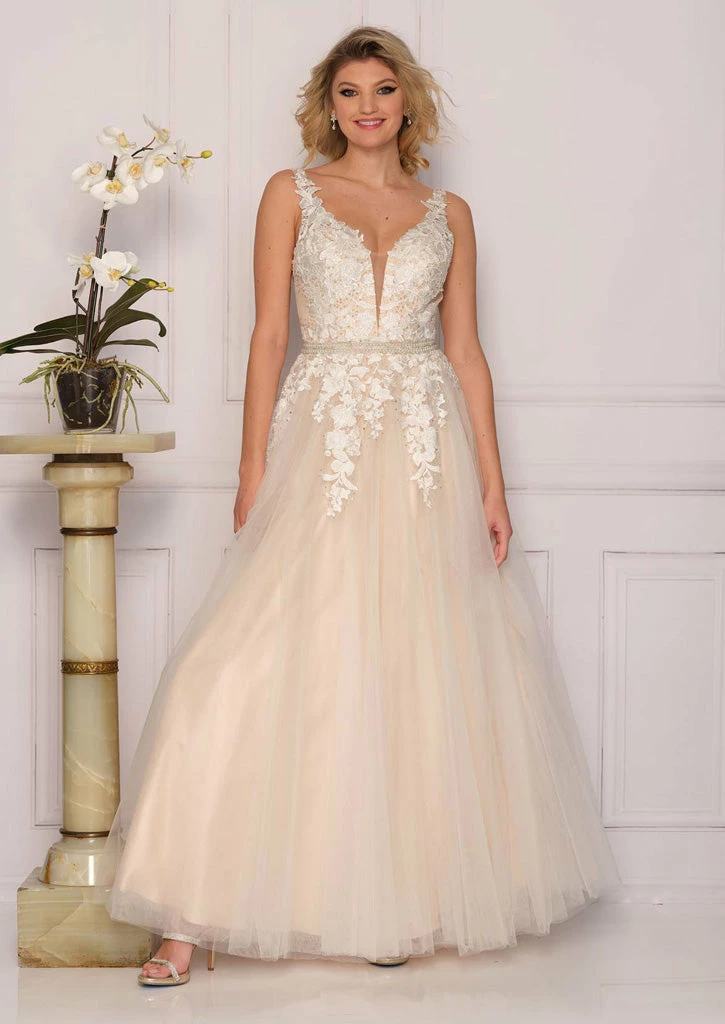Dave & Johnny 10246 Long Lace A Line Ballgown Prom Dress Bridal Gown