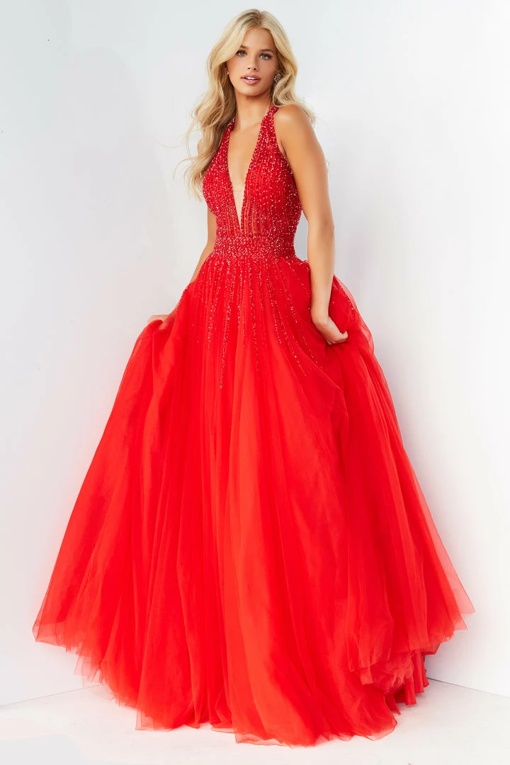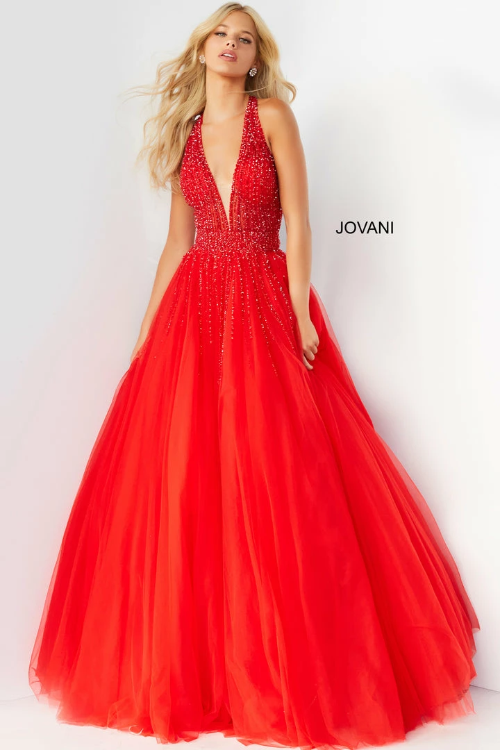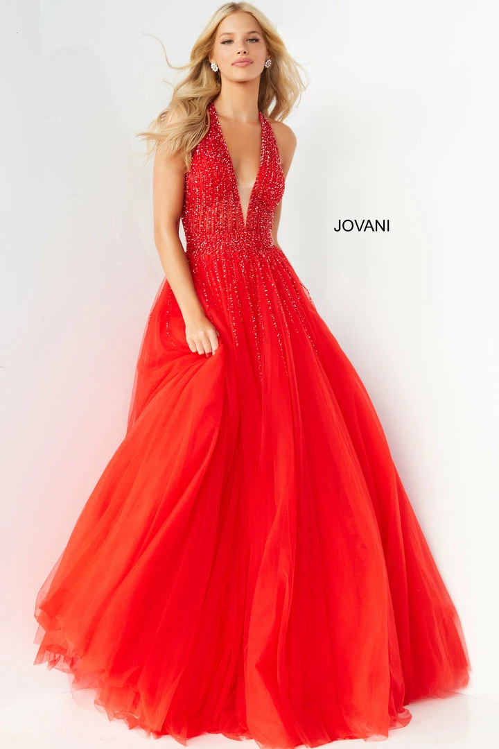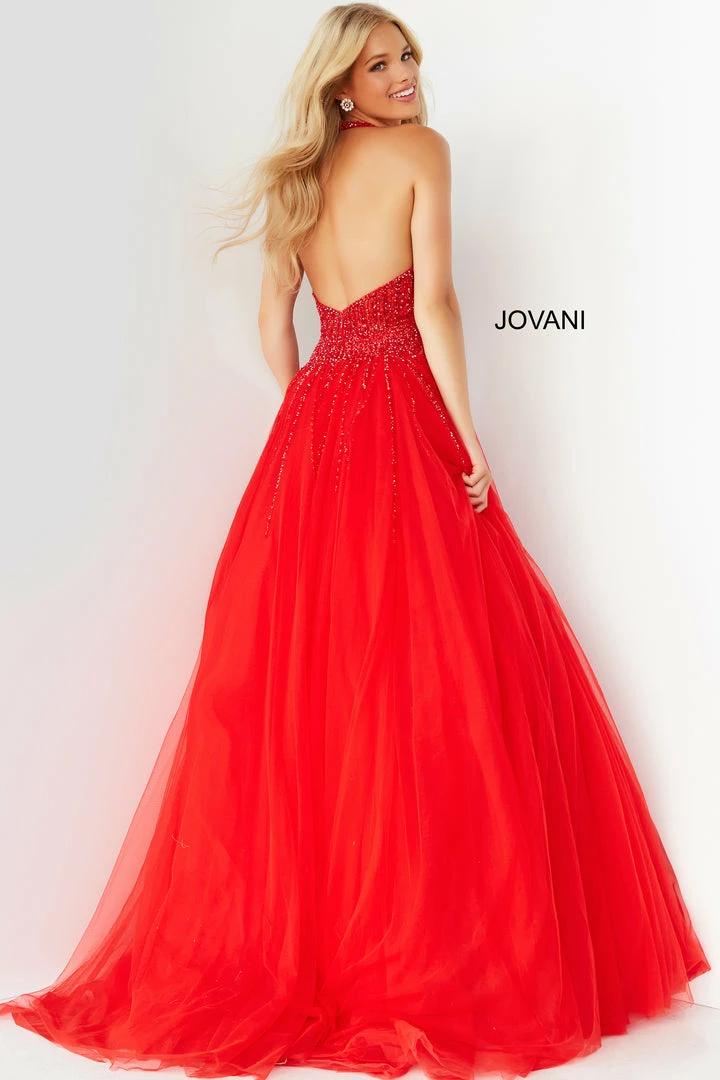 Jovani 06598 Long Ballgown Prom Pageant Gown V Neck Dress Halter Formal A Line