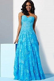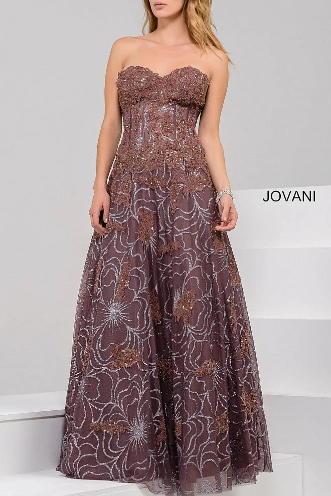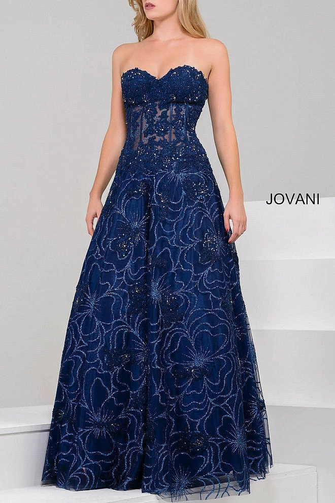 Jovani 14913 sweetheart neckline sheer embellished bodice lace A-line prom dress