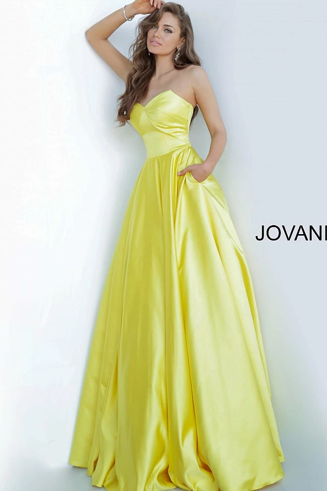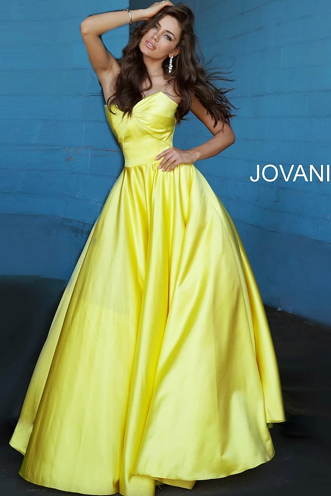 Jovani 67847 is an Absolutely Gorgeous Long Satin Prom Dress Ball Gown. Featuring a Full Skirt with a fitted bodice & sweetheart peak points neckline with a scalloped bust. Makes an excellent Pageant Gown.Â