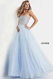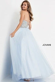 Jovani Kids K04710 This is a girls and preteen long formal dress.Β It has a straight neckline and is strapless.Β The bodice is embellished and the skirt is tulle and it has a corset in the back.Β Great for spring formal or other formal events.