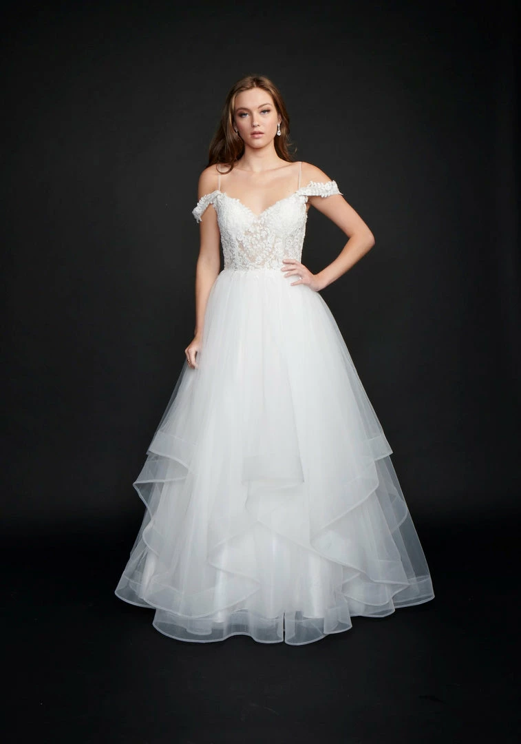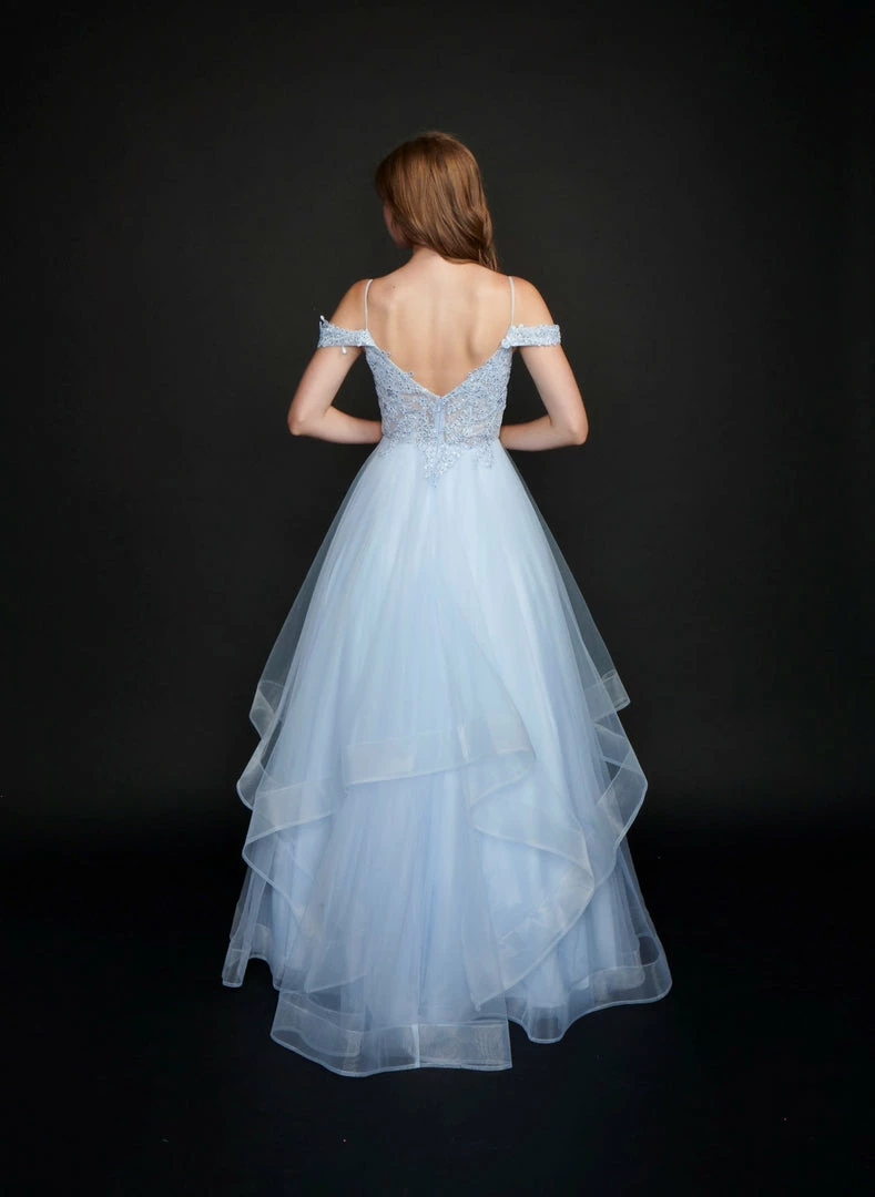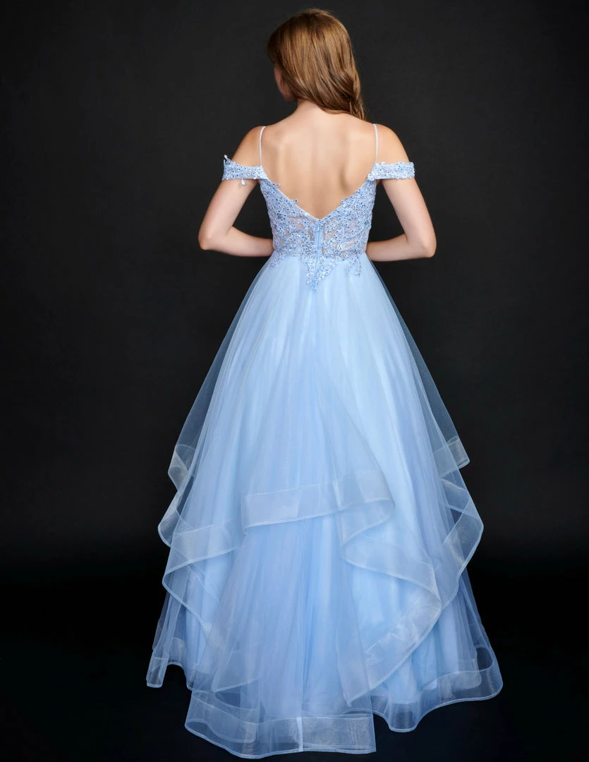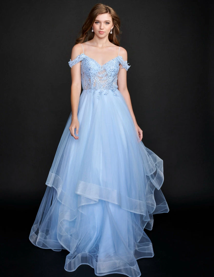 Nina Canacci 5205 Long Ballgown Prom Pageant Gown Long Sheer Ruffle Ballgown Prom Dress off the Shoulder Bridal Gown