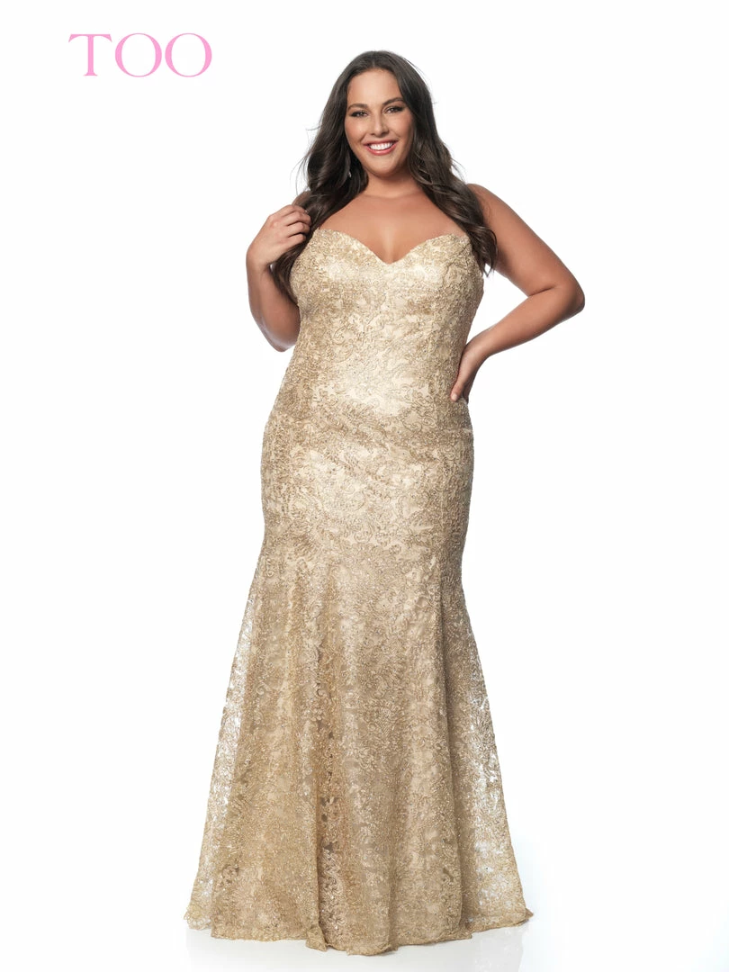 Jovani 37334 Long Sweetheart Embellished Lace Prom Dress Fitted Mermaid Strapless Mermaid Dresses