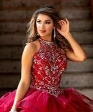 Sweetheart bodice with embellished sheer high neckline corset back layered tulle Quinceanera Gown sweet sixteen dress long full ballgown pageant prom dressÂ