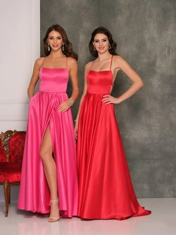 Dave & Johnny 6690 Long Satin Maxi Slit Prom Dress Formal Backless Gown Introduce elegance to your next formal affair in this Dave & Johnny gown, featuring a classic straight neckline, delicate spaghetti straps that introduce an alluring lace up back, and stunning a-line silhouette.