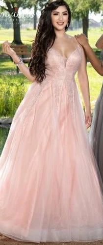 Envious Couture E1618 plunging v neckline embellished tulle prom dress ball gown with an open back