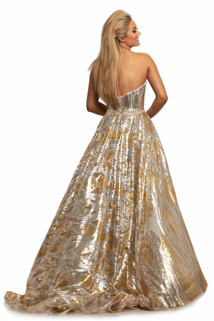 Johnathan Kayne 2025 is a sequin over skirt Prom Dress, Pageant Gown & Formal Evening wear gown. This Convertible Dress adds 2 completely looks to one style! Fitted Mermaid Silhouette with a plunging neckline and mesh insert. peak neckline accents. Detachable Ballgown over skirt with crystal embellished waist belt. Train on mermaid and over skirt.