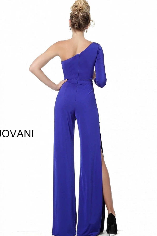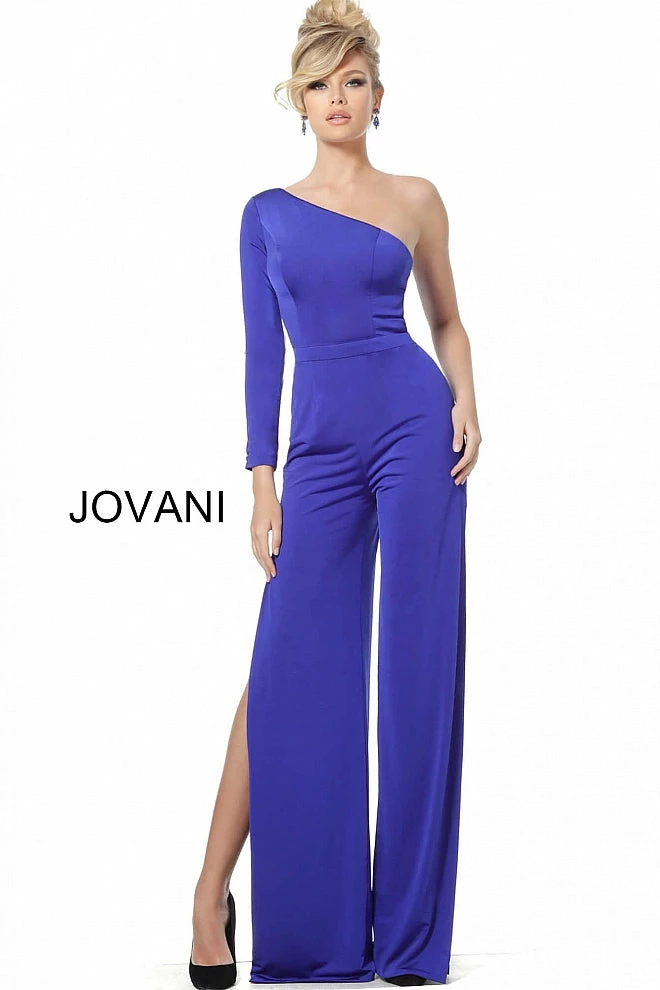 Royal One Shoulder Long Sleeve Prom Jumpsuit 1430 with open slit legs