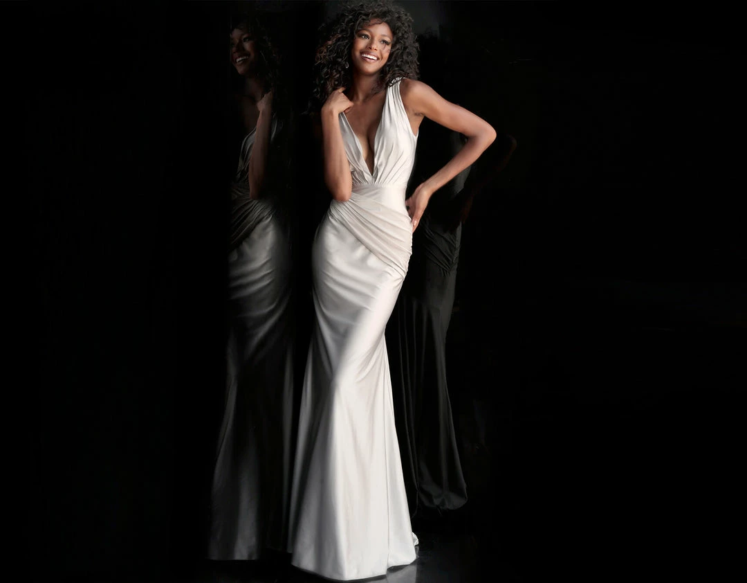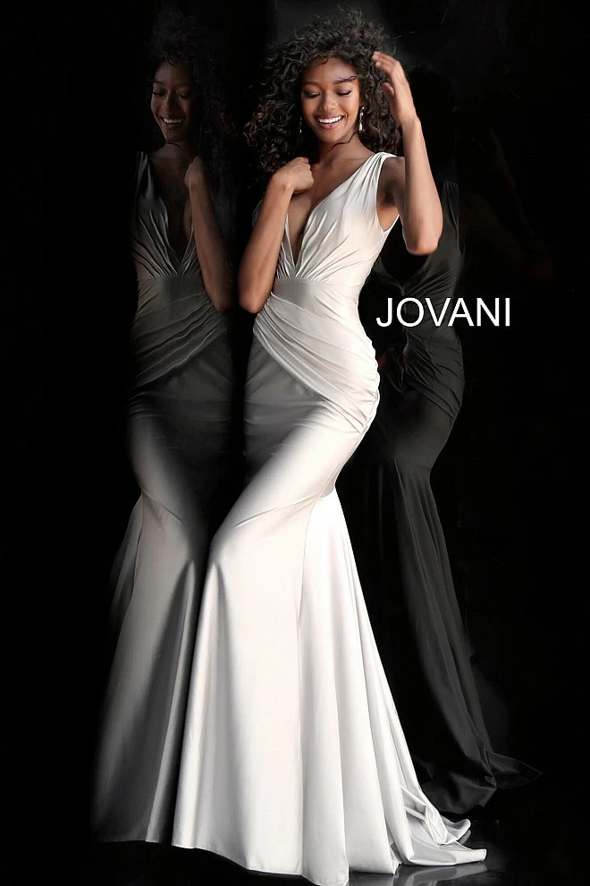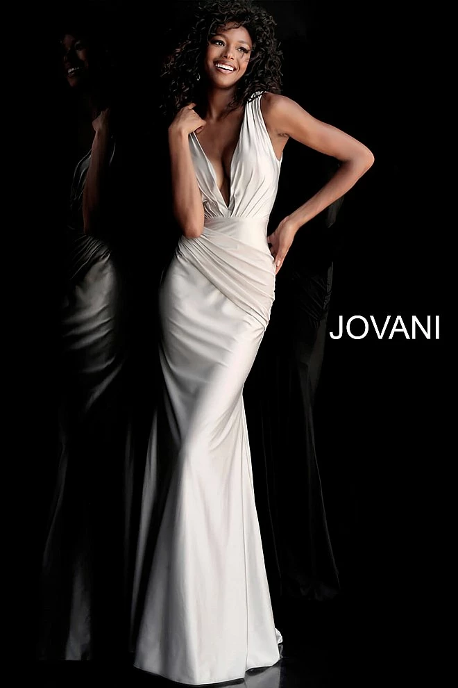 Jovani 66946 plunging neckline ruched bodice prom dress