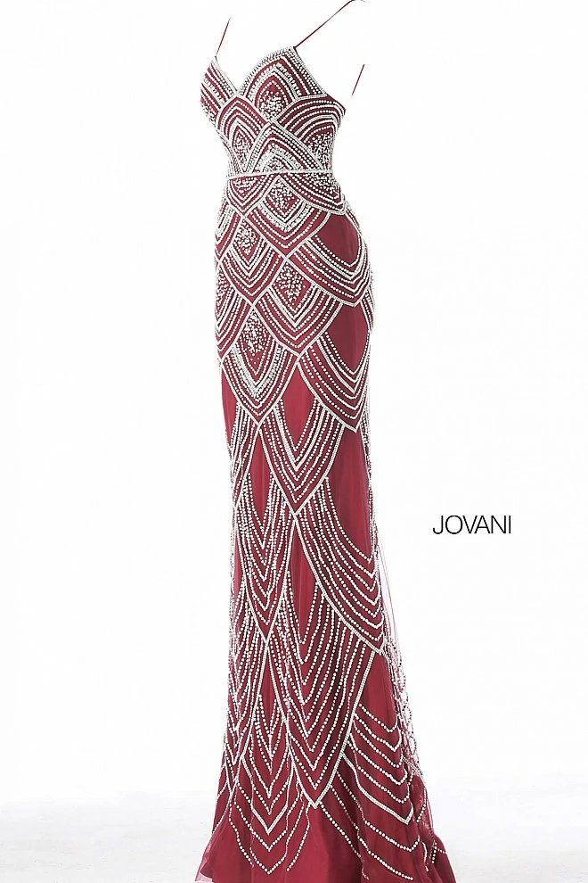 Jovani 60653Â Beaded Spaghetti Straps Fitted Prom Dress 60653