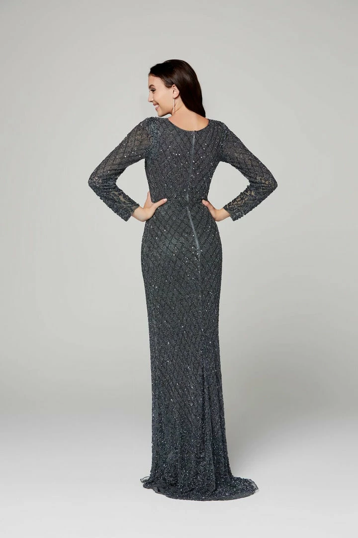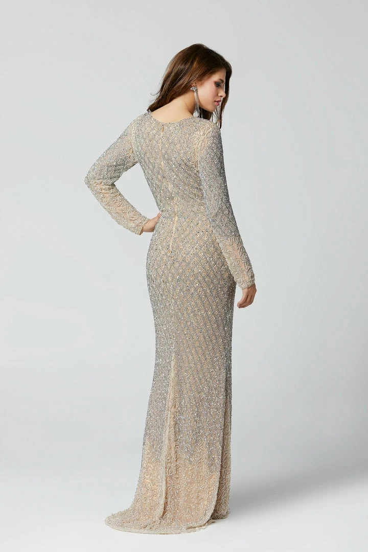 Long sleeve beaded full coverage long formal dress evening gown.Â