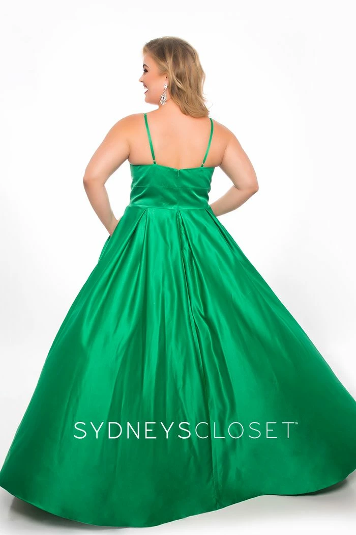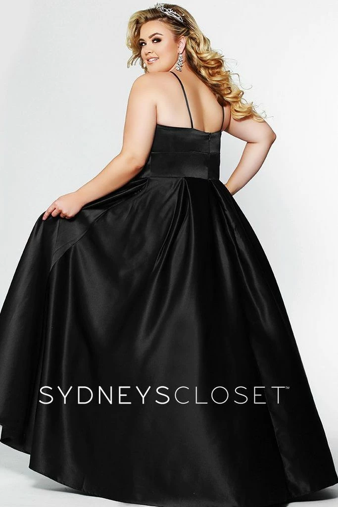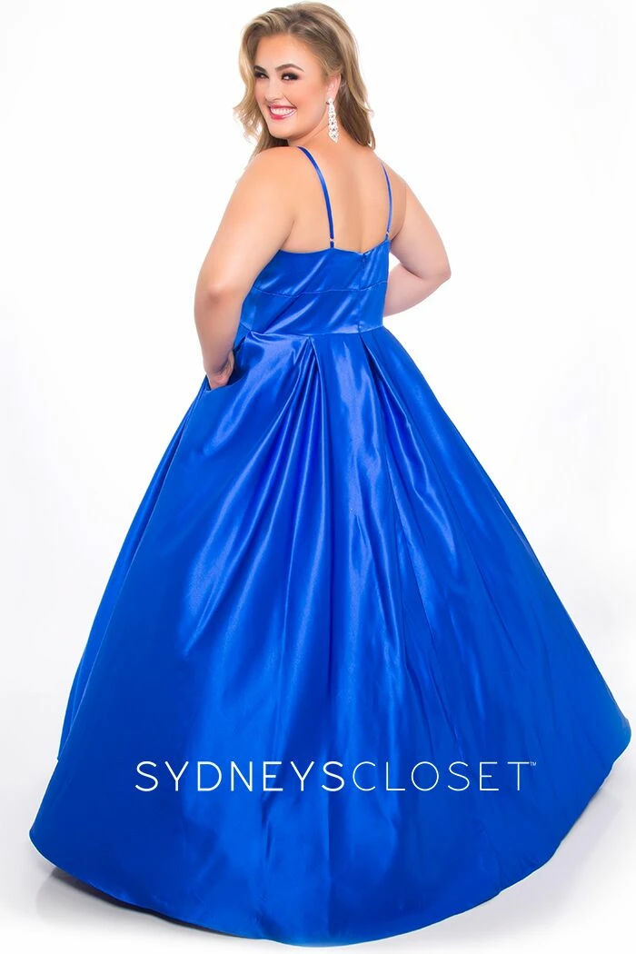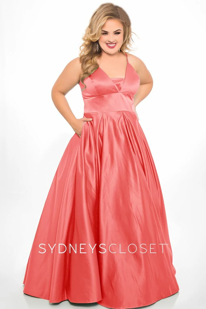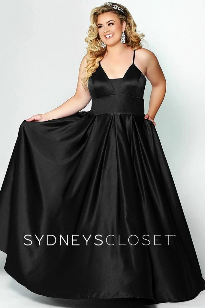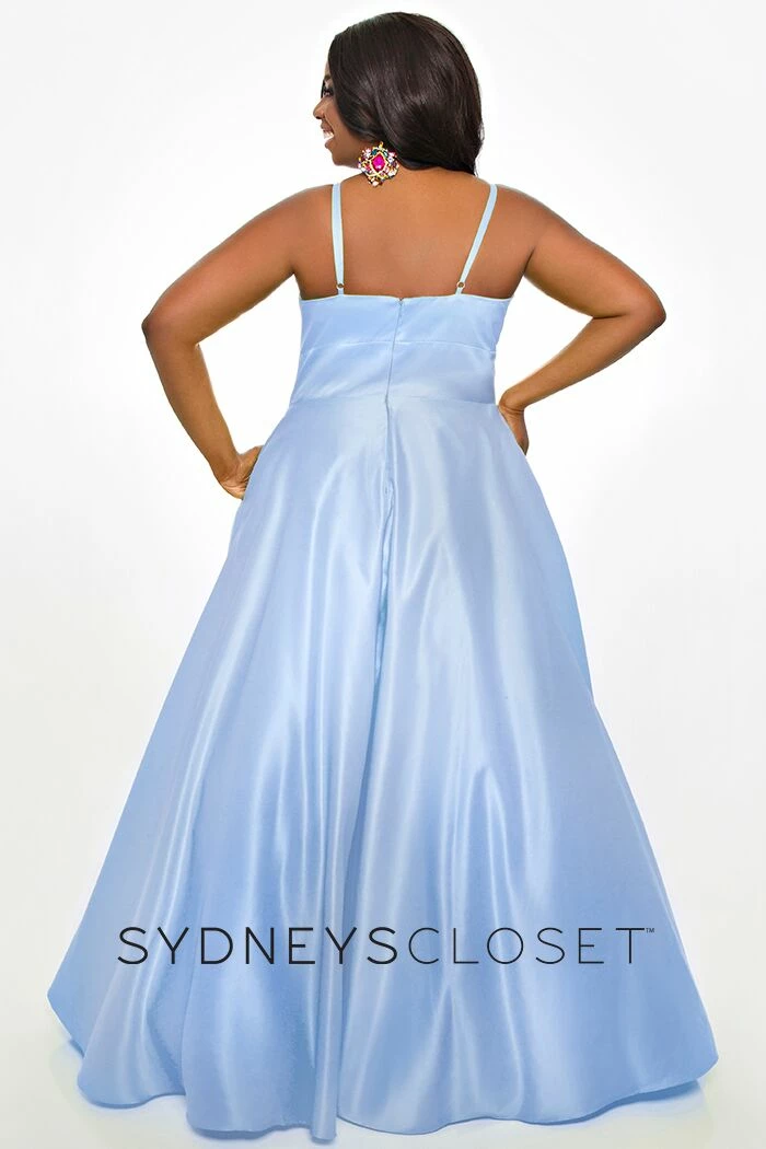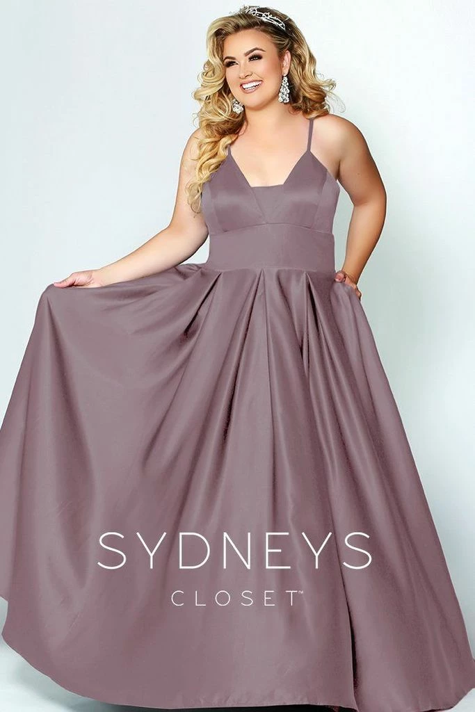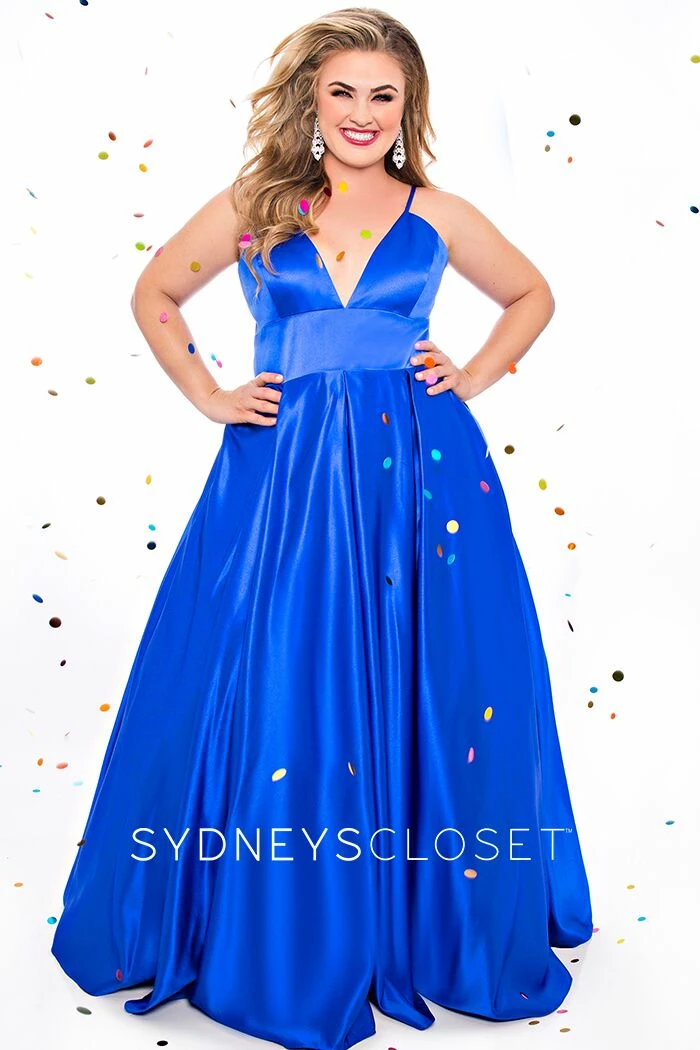 Sydneys Closet 7270 V neckline with courtesy panel satin long A line prom dress evening gown pageant dress plus sized military ball gown formal dressΒ