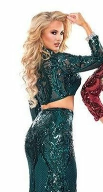 Envious Couture E1463 is a long Prom Dress, Pageant Gown & Formal Evening Wear. This Dress is a two piece long sleeve sequin fitted prom dress evening gown. E 1463 Perfect for Plus Size Holiday Party Dress, Prom, or your next formal event.Â