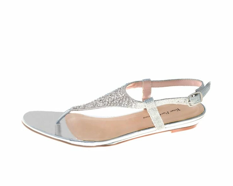 Your Party Shoes Summer Crystal Embellished Metallic Flat Thong Sandals PromÂ