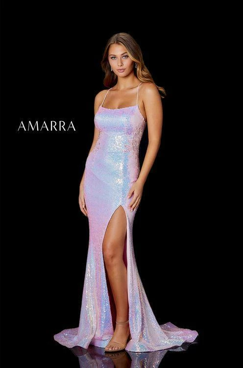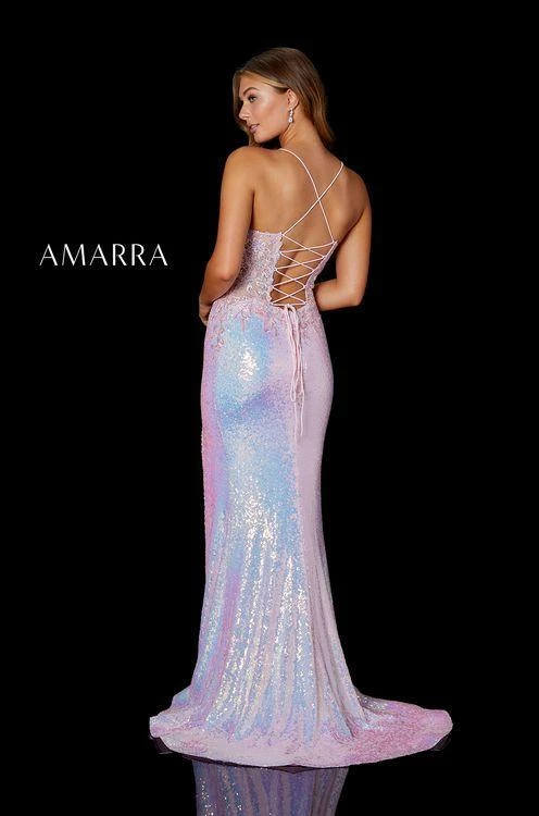 Amarra 87211 Long Sequin Slit Formal Prom Pageant Dress Backless Corset Sheer lace embellished sides