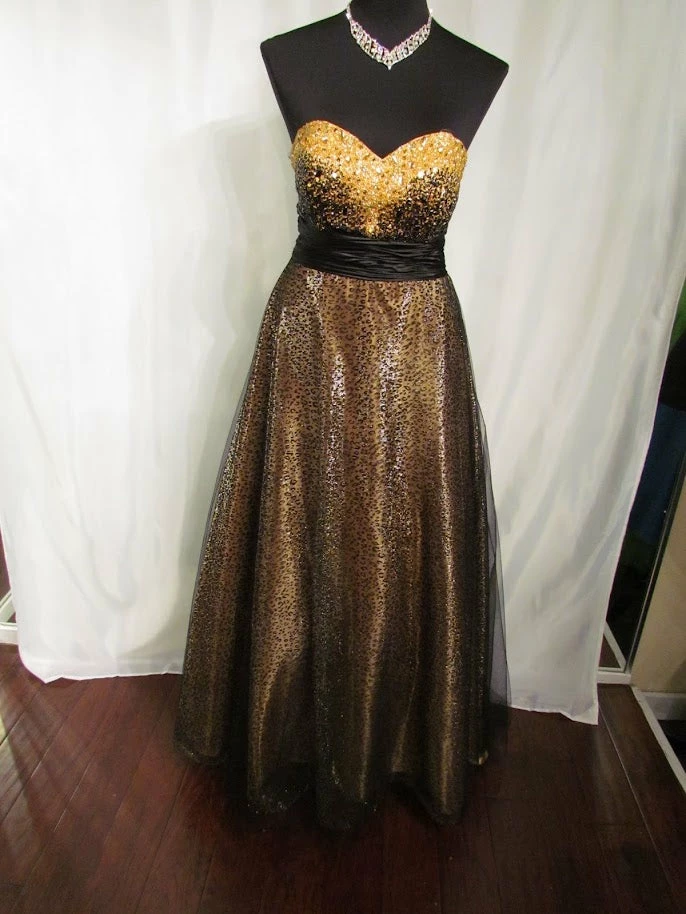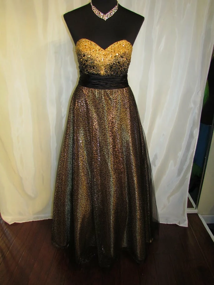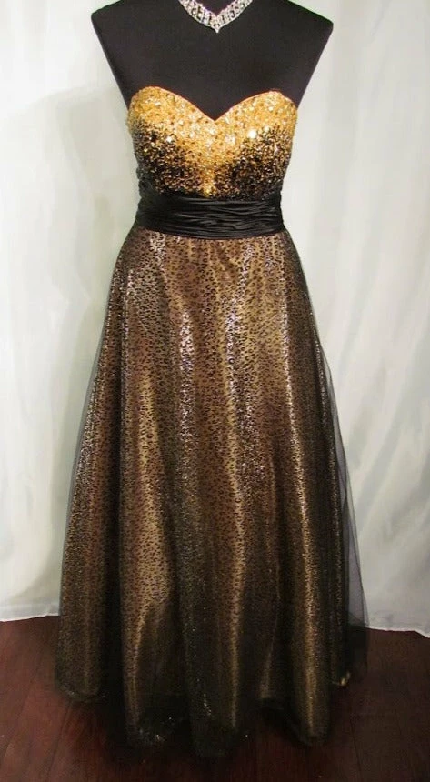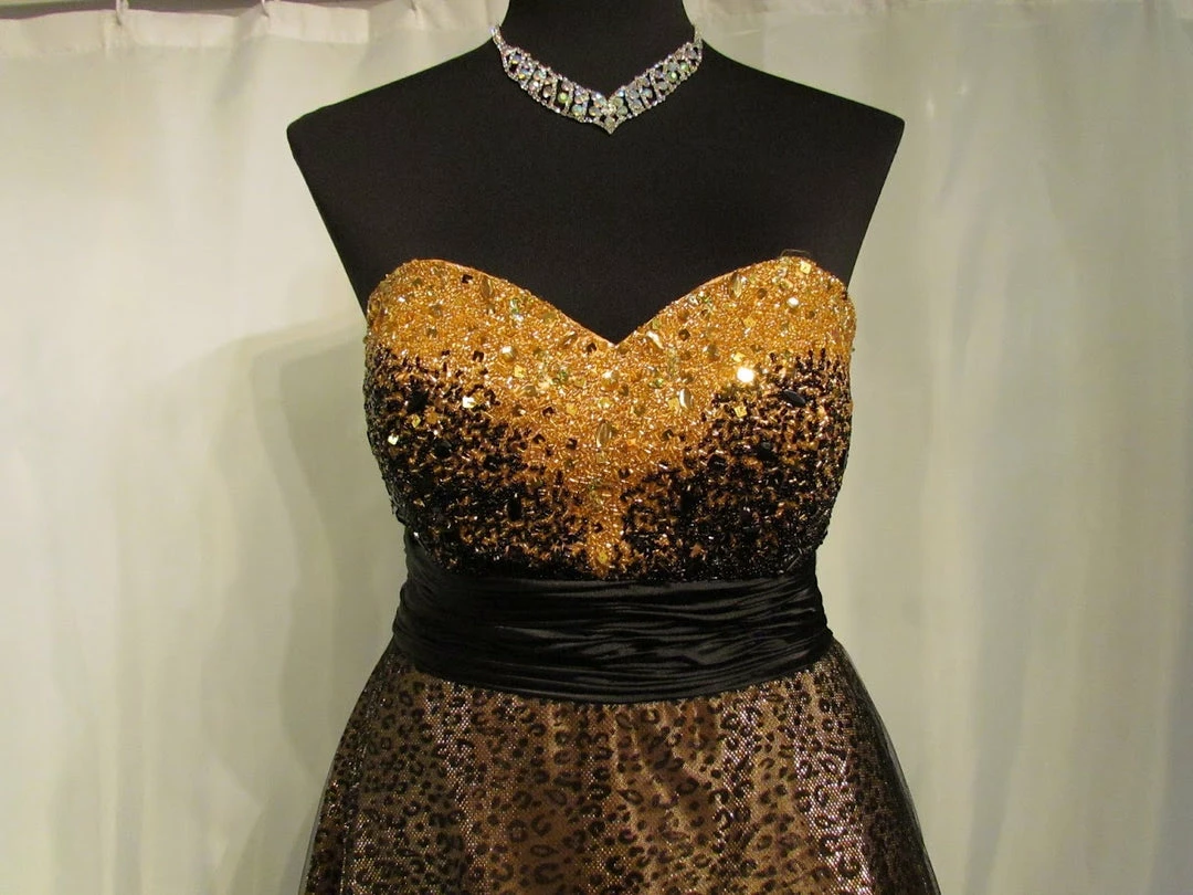 Riva Designs 6570 Size 12 Long Animal Print Ballgown Strapless Shimmer Cheetah Dress