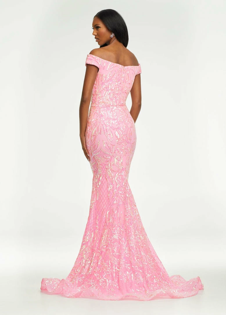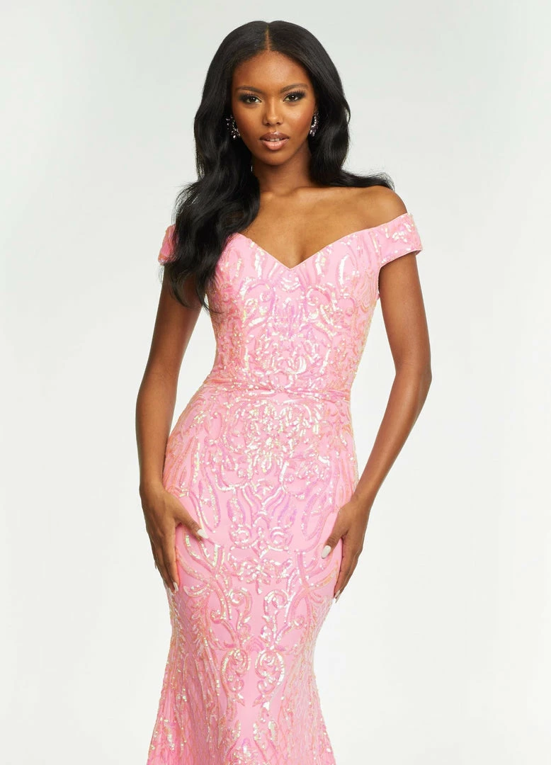 Ashley Lauren 11112 Off the Shoulder Stretch Sequin Gown