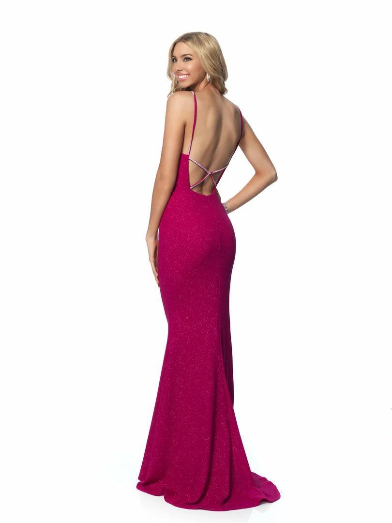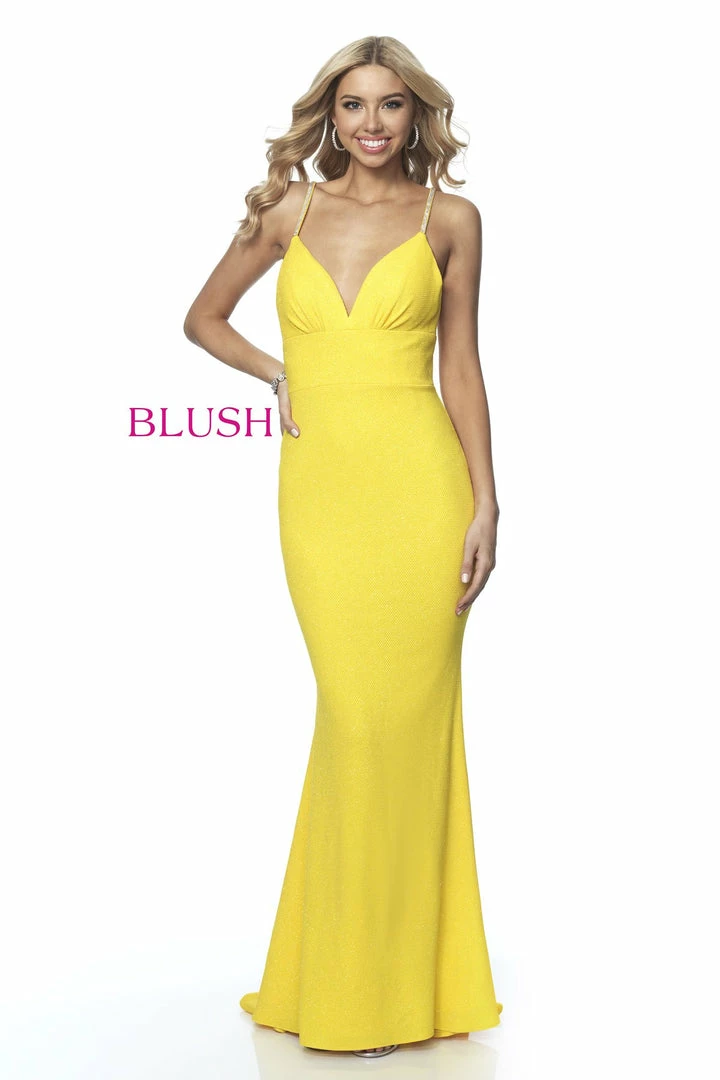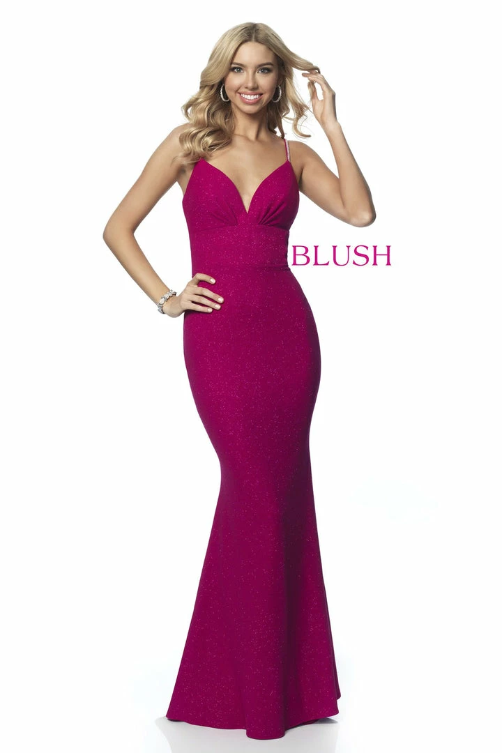 Blush Prom 11891Â Diamond cut glitter knit fabric in a fit flare silhouette that features a plunging sweetheart neckline, beaded spaghetti straps, and a daring open back. Back zipper closure. Great for prom & any formal event
