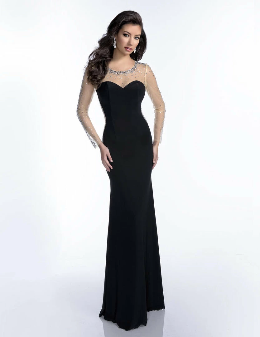 Envious Couture by Karishma Creations style 16114 is a timeless evening dress with illusion jewel neckline bodice adorned with crystals and has long sheer sleeves embellished with scattered crystal accents. This stunning sweetheart style is made of jersey material to showcase your curves. Formal Evening Gown. Sheer Long sleeve embellished dress.