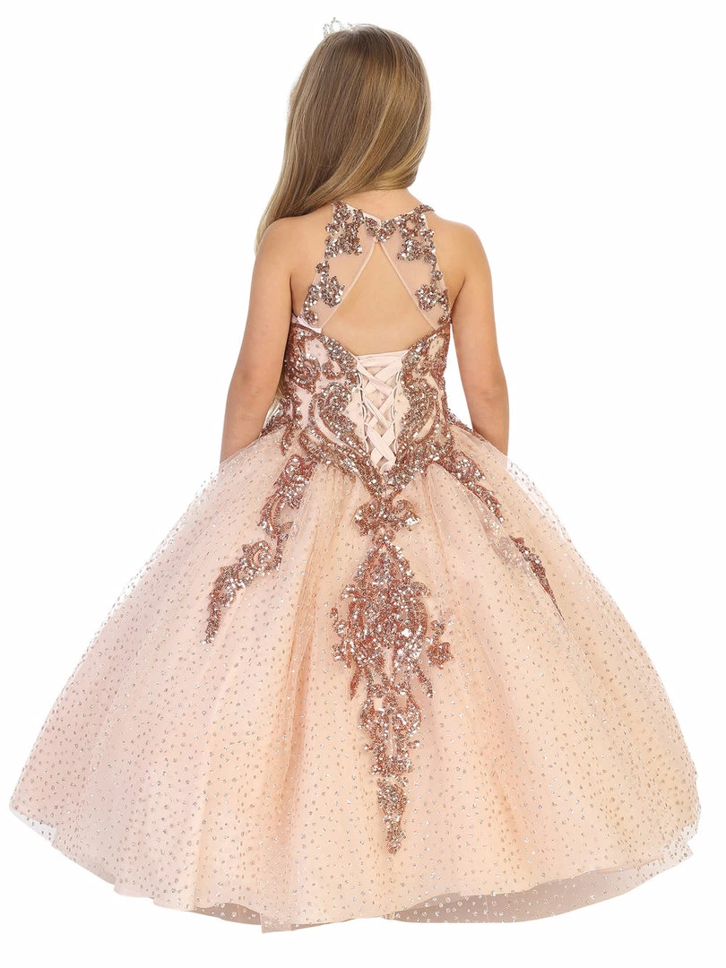 DQ K727 Size 2 Rose Gold Girls Ballgown Pageant Dress Sequin Lace Glitter Corset