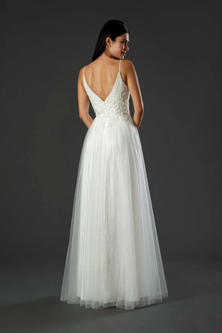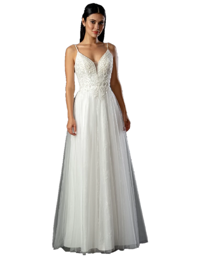 Stella Couture 21084 Long Lace under soft tulle with an Embellished V Neckline. This A Line Wedding Dress is a perfect Bridal Gown for any bride!