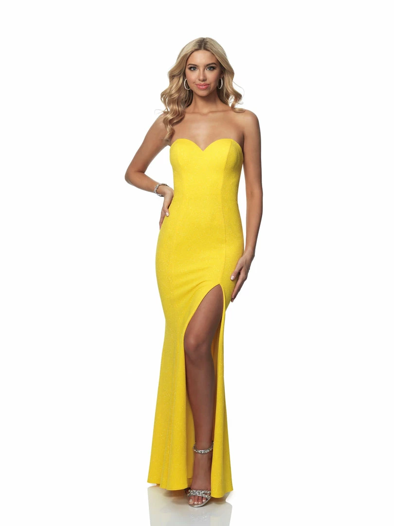 Blush Prom 11973 strike a pose in this one of a kind strapless Blush dress 11973 perfect for any upcoming special event. Showing off a classic strapless sweetheart neckline thus flaunting a simple open back with a zipper closure. Figure flattering silhouette shows off your hourglass figure featuring a dramatic swept train. Dramatic back zipper accent. Shimmering Glitter fabric