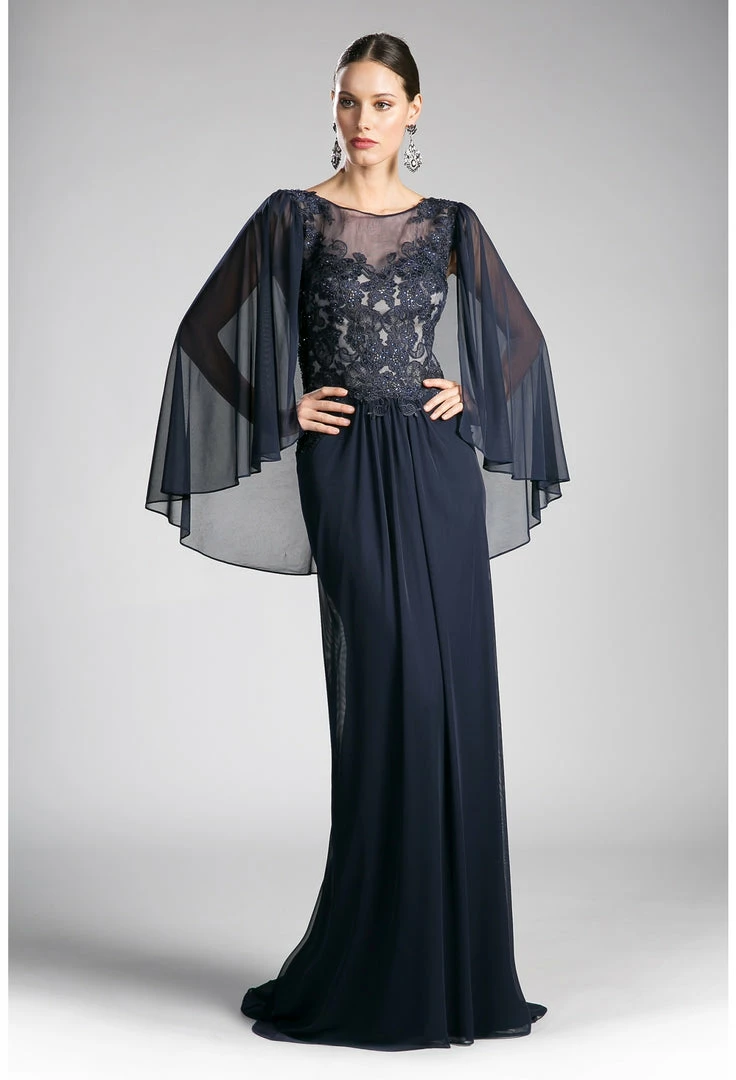 CD 0001 Size 10 Burgundy Long Mother Of Chiffon Formal Dress Draped Cape Sleeve Lace