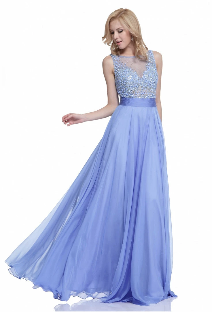 CD 255 Size 4 Fuchsia Long Chiffon Sheer Pearl Rhinestone A Line Prom Dress Pageant Gown