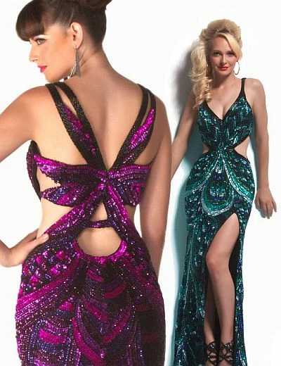 Cassandra Stone by Mac Duggal 3543 Peacock sequin prom dress evening gown.
