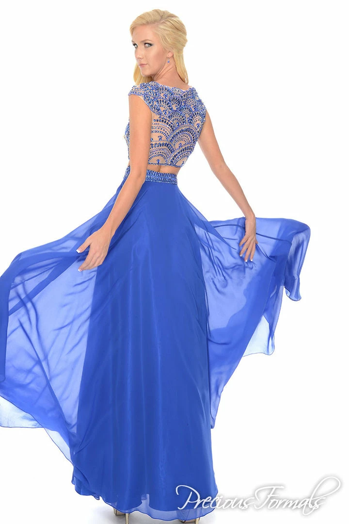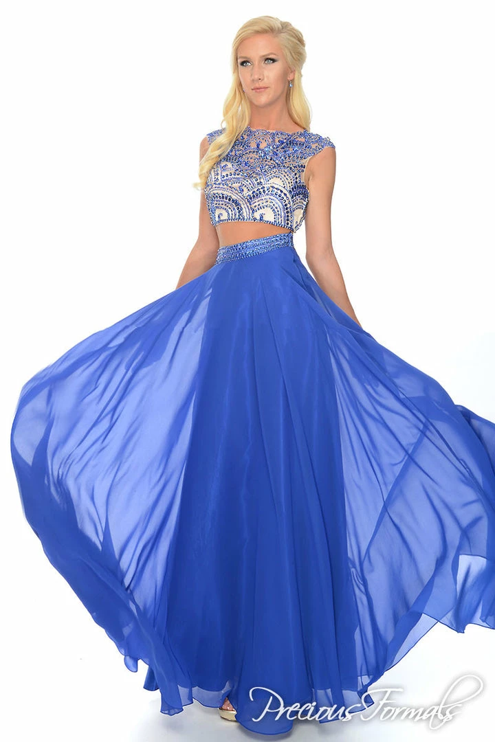 Precious Formals style P 38032 size 4 Royal Blue two piece gown with beaded top and chiffon gown with beaded waistline