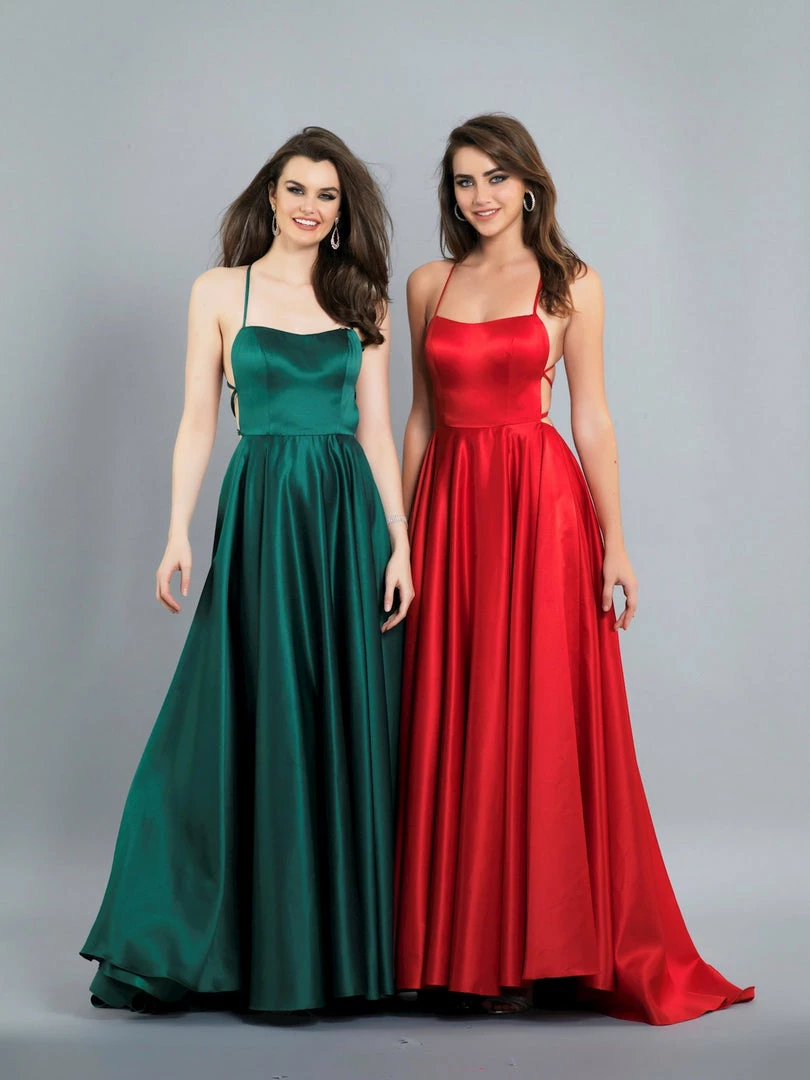 Dave & Johnny 6690 Long Satin Maxi Slit Prom Dress Formal Backless Gown Introduce elegance to your next formal affair in this Dave & Johnny gown, featuring a classic straight neckline, delicate spaghetti straps that introduce an alluring lace up back, and stunning a-line silhouette.