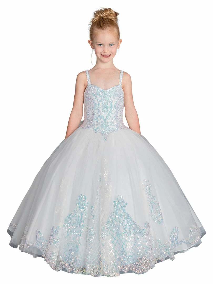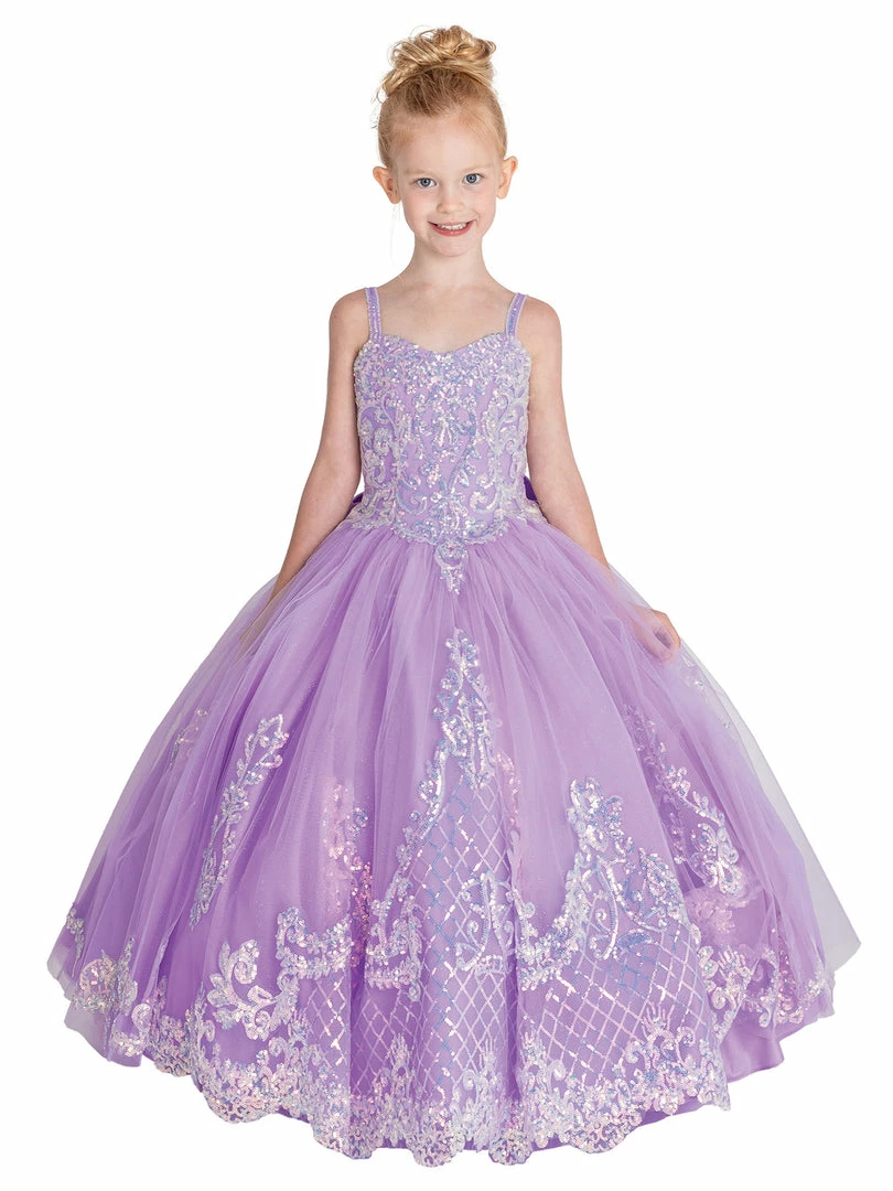 DQ K800 Size 4 Lilac Girls Iridescent Sequin Ballgown Pageant Dress Corset with oversize Bow Glitter Tulle Lush SkirtÂ