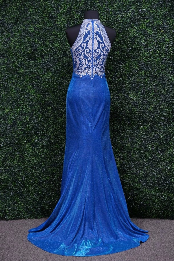 Envious Couture 0167 Size 6 Iridescent Shimmer Fitted High Lace Neck Formal Dress Prom