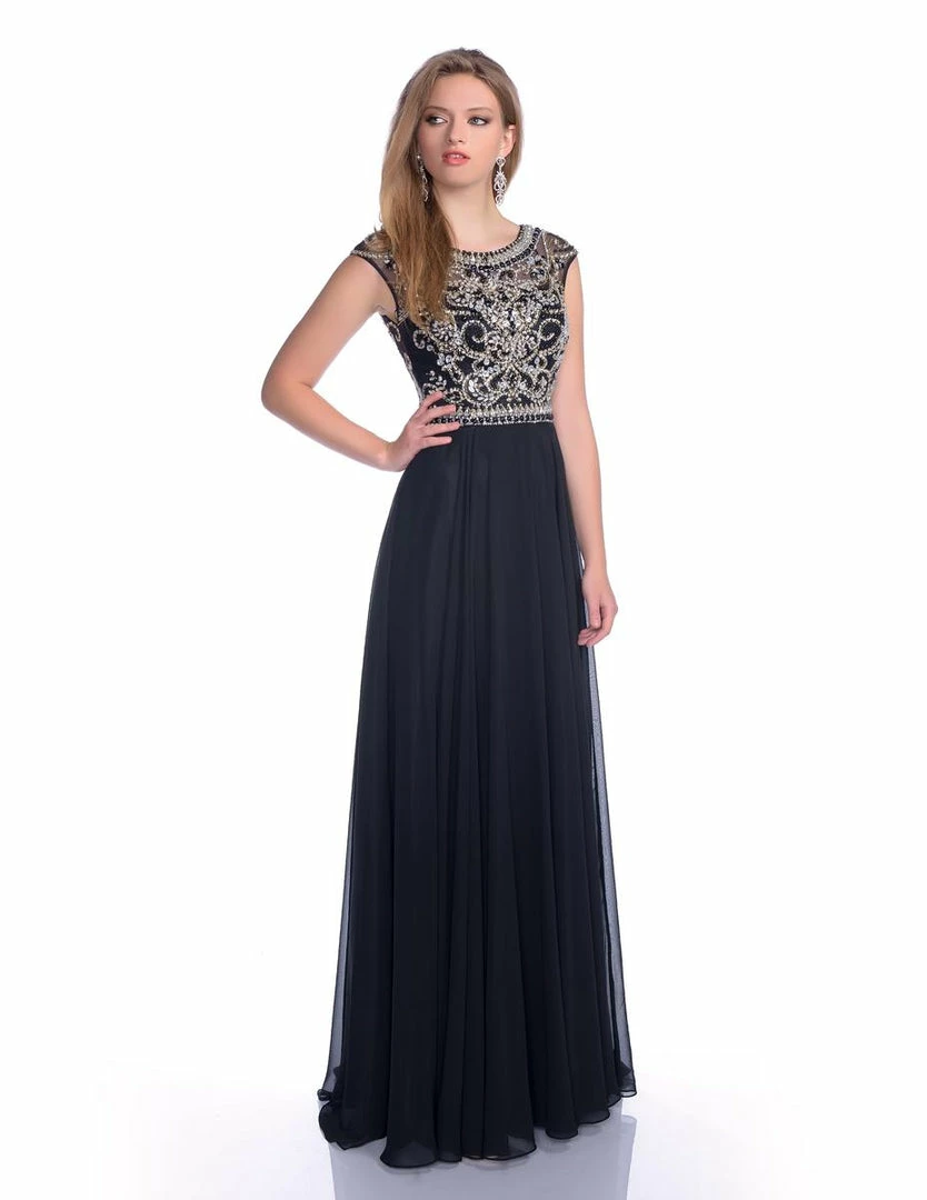 Envious Couture 16050 Long beaded cap sleeve embellished top with open back flowy chiffon A line prom dress evening gown formal dress. A Line formal evening gown. Great prom dress
