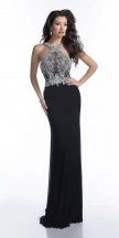 Envious Couture 16179 embellished bodice jersey prom dress size 4 Black Envious Couture 16179 Size 4 Lace Haler Formal Evening Dress Backless Sheer Jersey Gown